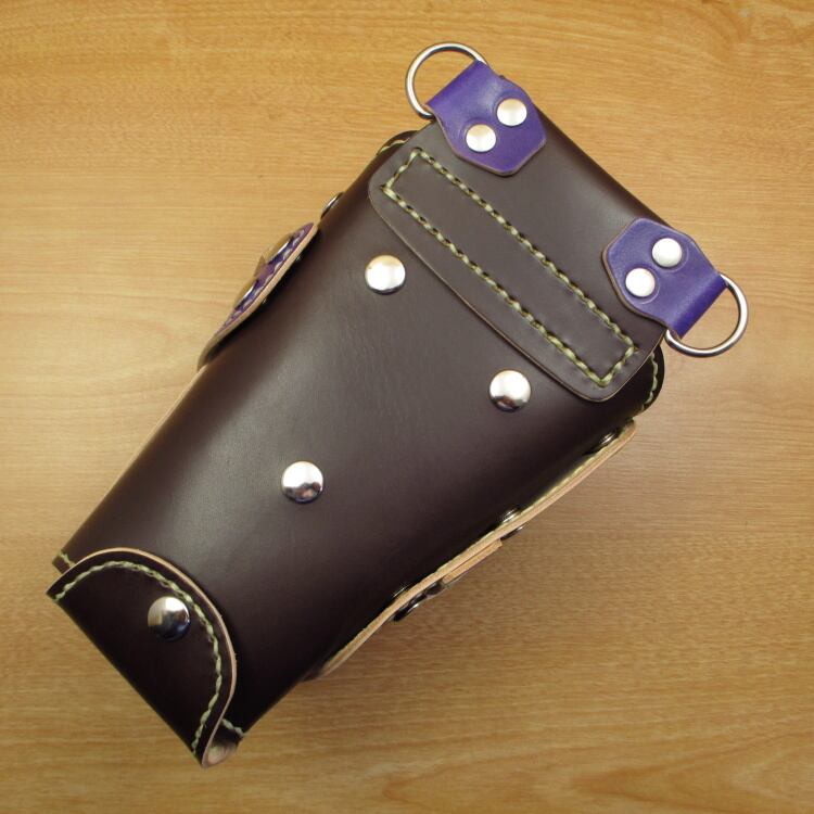 6丁差 (腰用革ベルト付)シザーケース ダークブラウン×パープル (SCL-100/CDC)