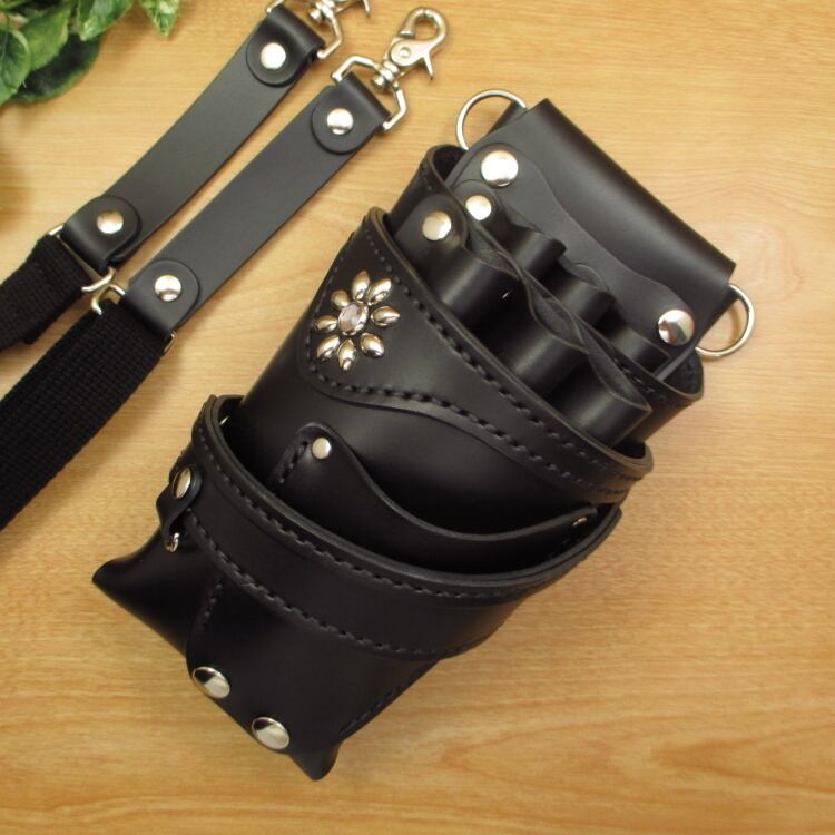 6丁差 シザーケース(フラワースタッズ) オールブラック (SCA-235/CKA)