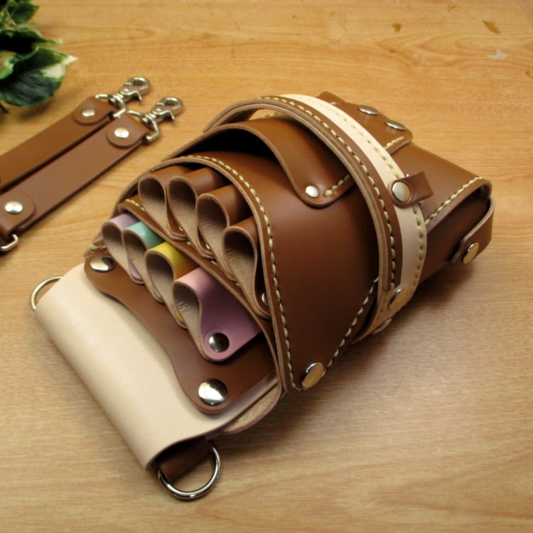 【トリマー向き】8丁差 シザーケース キャメル×カラフル(TSC-13/CCC)