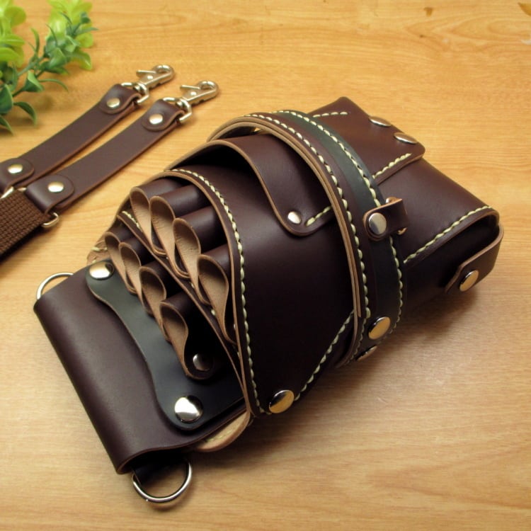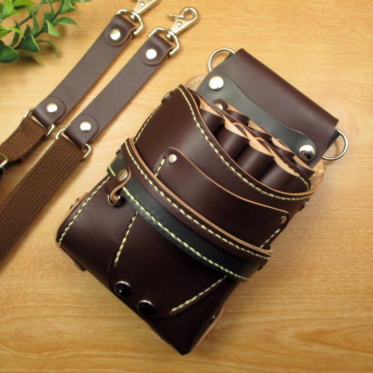 【トリマー向き】8丁差 シザーケース ダークブラウン×ダークグリーン(TSC-13/CDC)