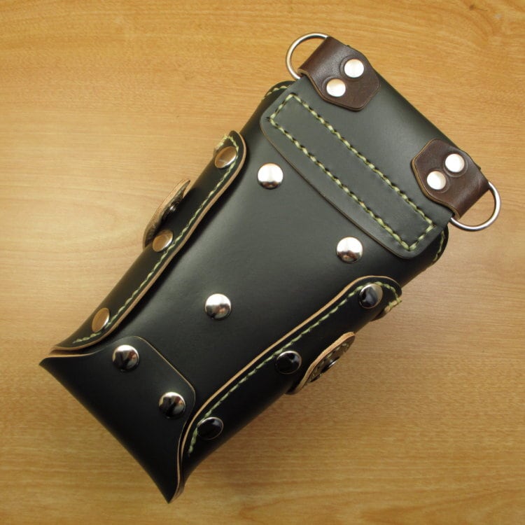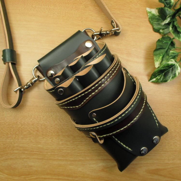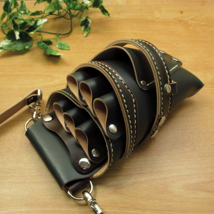 6丁差 (腰用革ベルト付)シザーケース ダークグリーン×ダークブラウン (SCL-154/CGA)