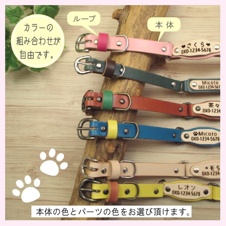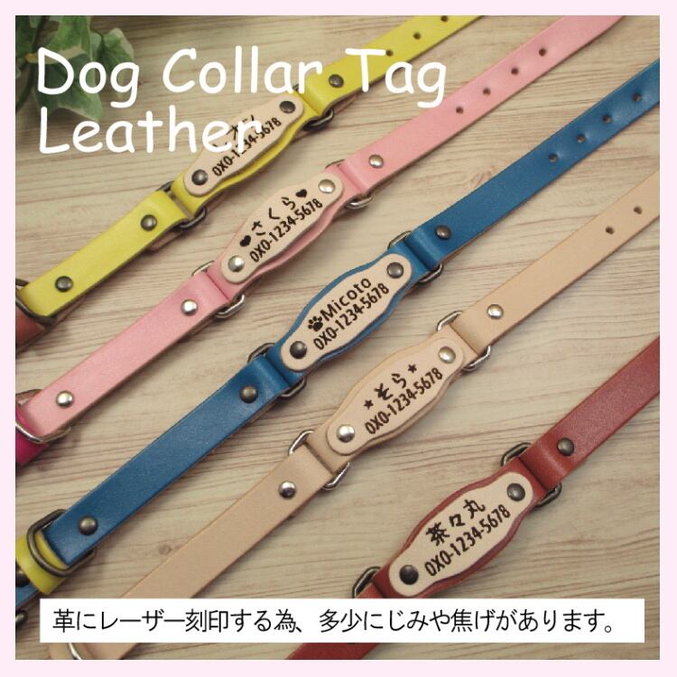 本革 カラフル☆カラーが選べる☆ 小型犬向け★迷子札★首輪型